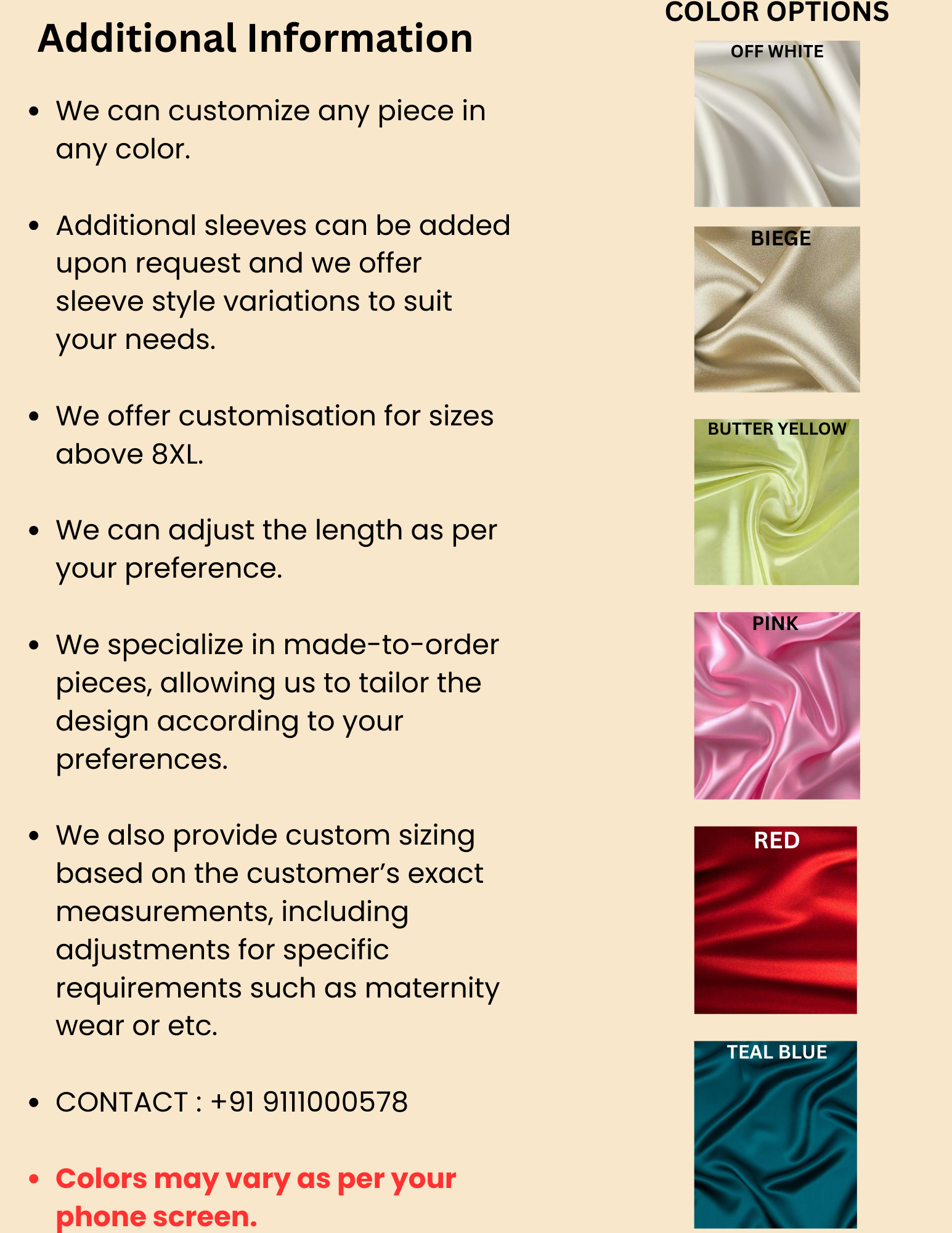 4. The length of the outfit depends on the size so please ask us for more information on +91 9111000578.